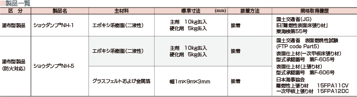 - NHシリーズは比較的厚めのベース材に有効なエポキシ樹脂ベースの2液混合塗布型制振材です。