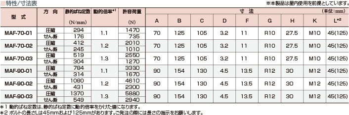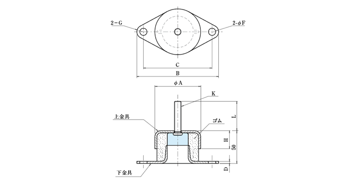 微振動にも適用するため、ゴム材料は天然ゴムを使用しております。
