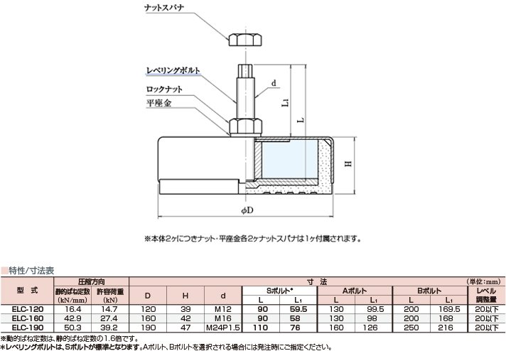 - 設置後にレベリングボルトを締め込むだけで、容易にレベルが調整可能です。
