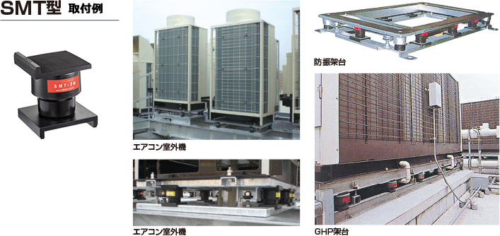 - 架台受けはゴム製のため、高周波数の振動絶縁に効果的です。