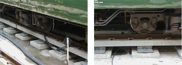 防振装置の線路方向のばね定数は、鉛直・線路直角方向のばね定数に比べ小さいです。